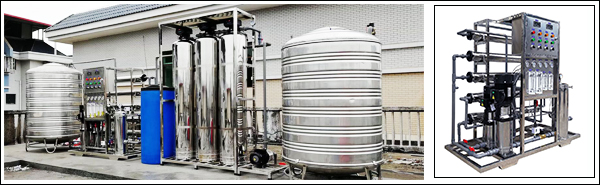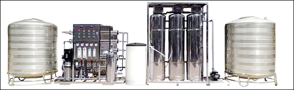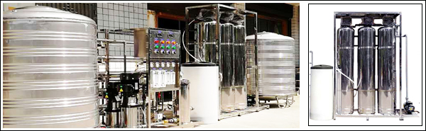 全套反滲透設備構成:進水箱、增壓泵、一體化過濾軟化設備、保安過濾器、純水設備、出水箱。