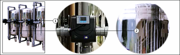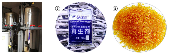 設備組成:自動控制閥、玻璃鋼樹脂罐、加藥鹽箱、鏈接管件、軟水鹽、陽離子樹脂。