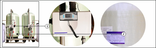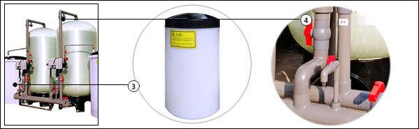 設備組成:微電腦主機控制器、玻璃鋼樹脂罐、加藥鹽箱、鏈接管件、軟水鹽、陽離子樹脂。