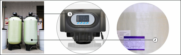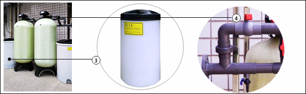 設備組成:微電腦主機控制器、玻璃鋼樹脂罐、加藥鹽箱、鏈接管件、軟水鹽、陽離子樹脂。